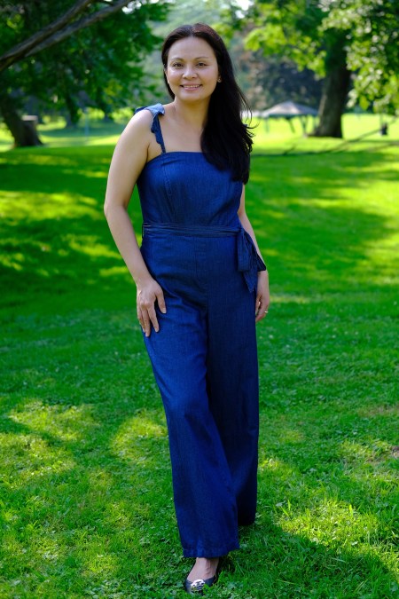 I said goodbye to my skinny jeans and said hello to wide-leg pants and jumpsuits. I fell in love with the color, comfy fabric, and wide-leg silhouette of this one in particular.